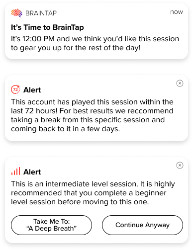 BrainTap Product, product strategy, wireframing, product design (mobile + desktop)