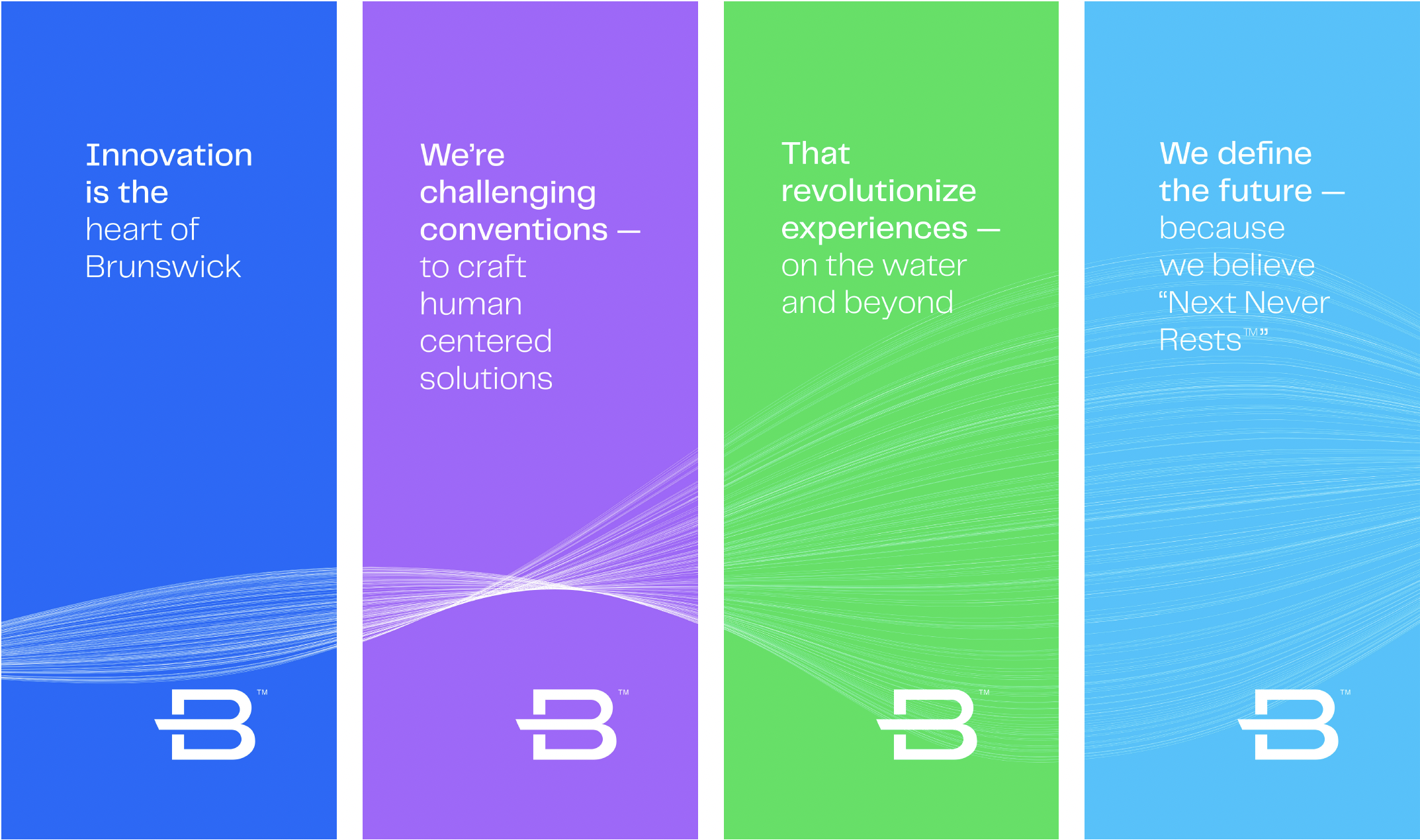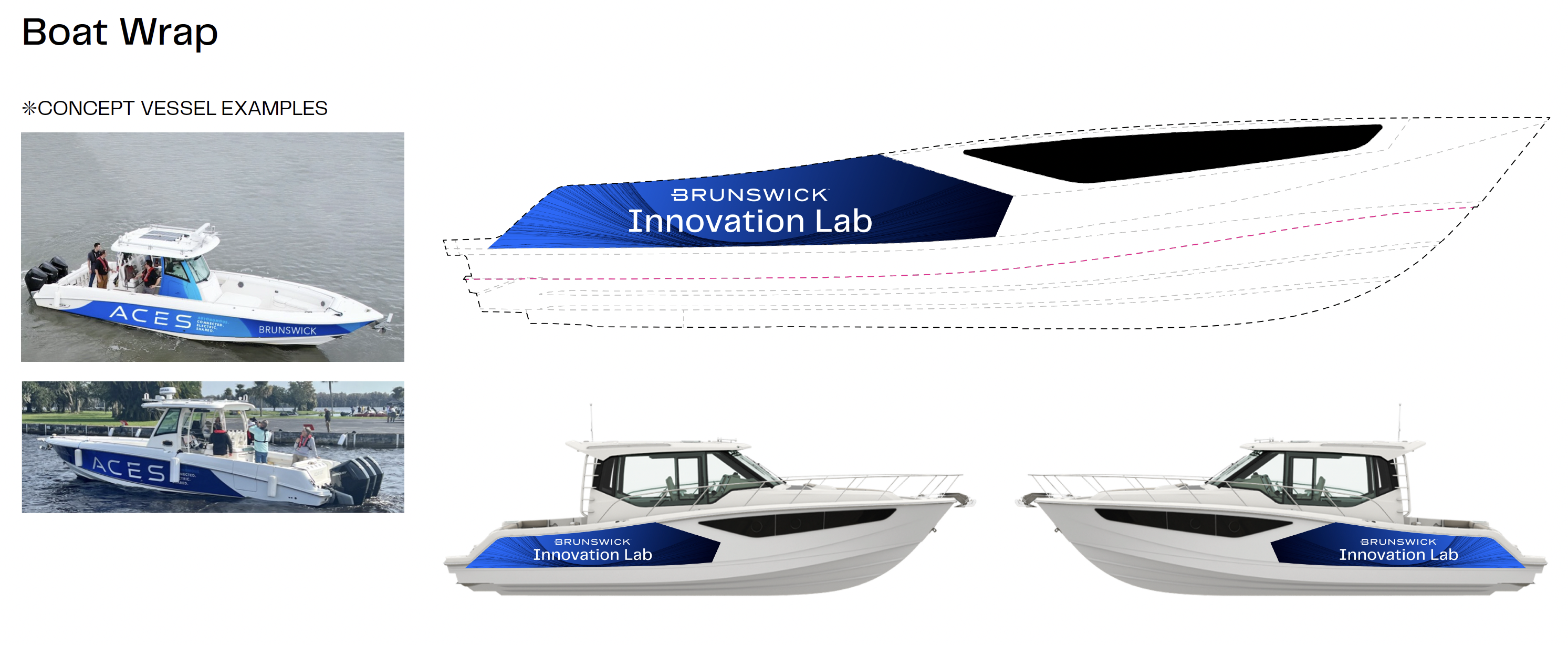 In preparation of Brunswick Corporation’s largescale event known as Investor Day, I helped create key branding moments. These pieces included invitations, media cards, a powerpoint presentation deck, a landing page, and several environmental branding moments to help create an immersive space: wind sails, window clings, boat wraps, branded towels, multiple large scale banners, and more.